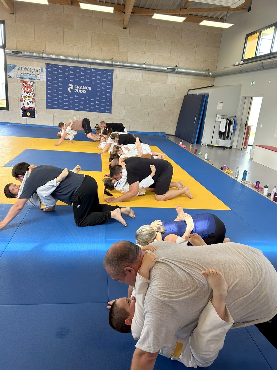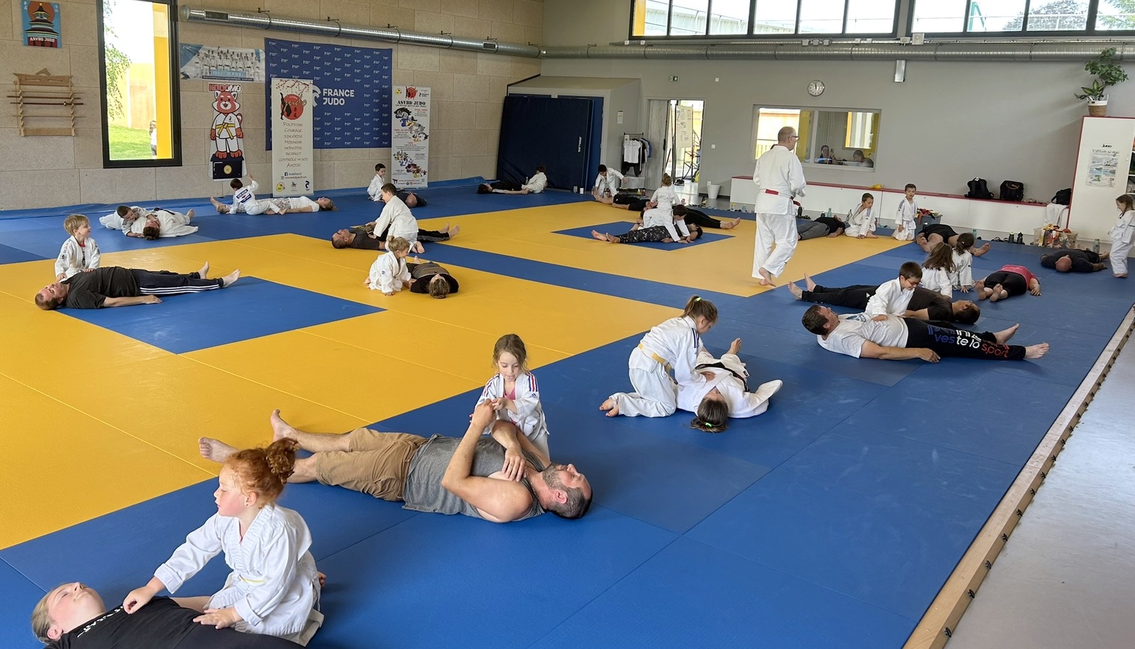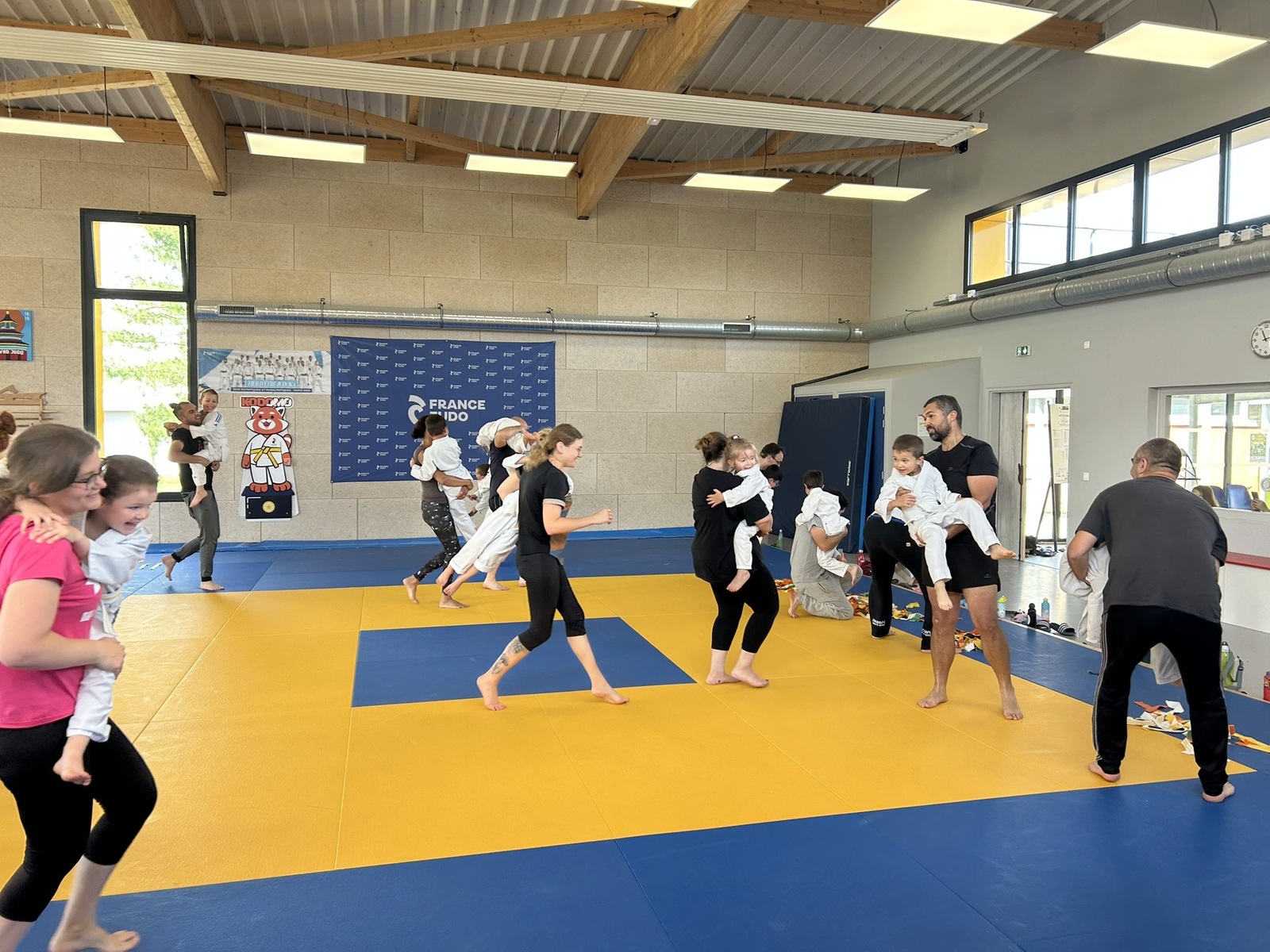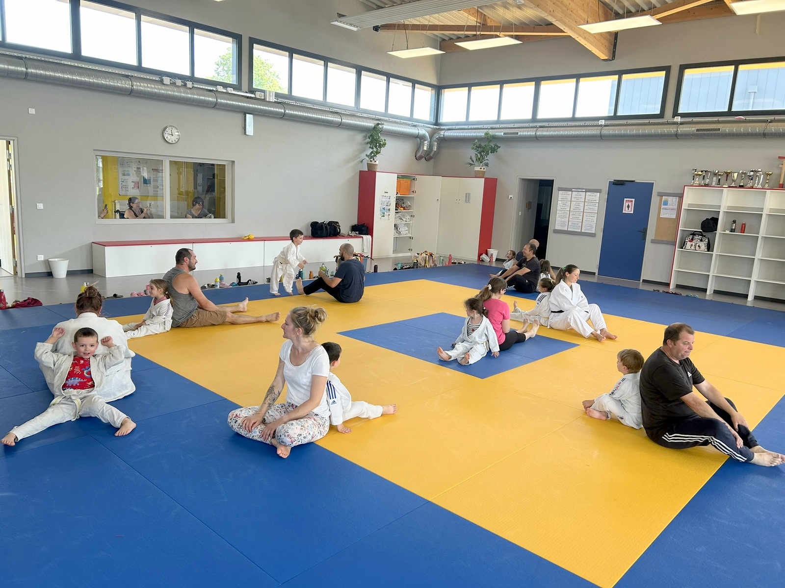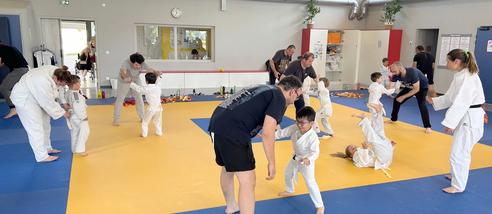 Samedi 14 juin 2025, au dojo d'Echenon, s'est déroulé la traditionnelle animation "Fête des Parents", un mix Fête des mamans et Fête des papas. Un papa ou une maman en accompagnement de son enfant sur le tatami.