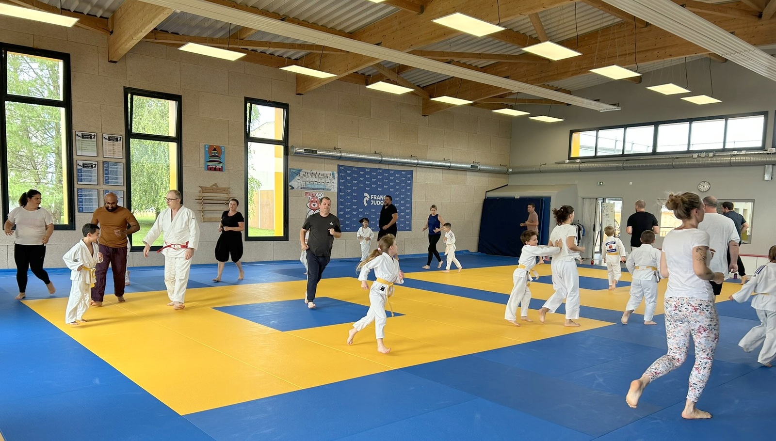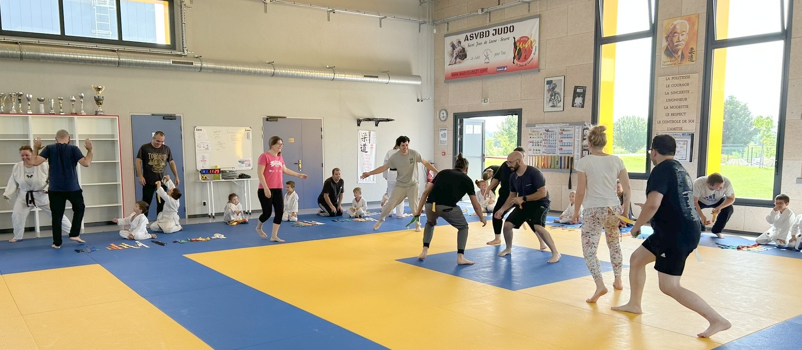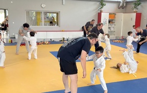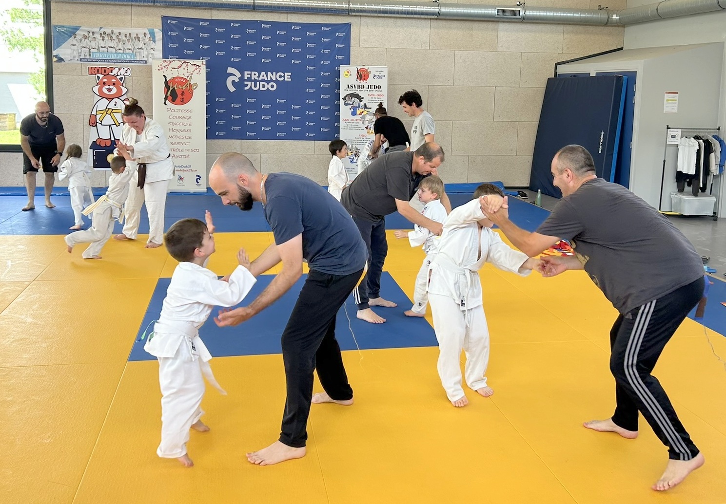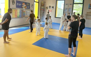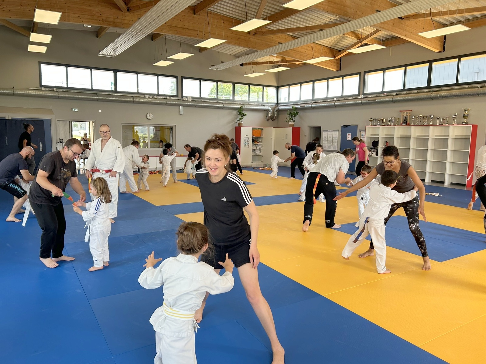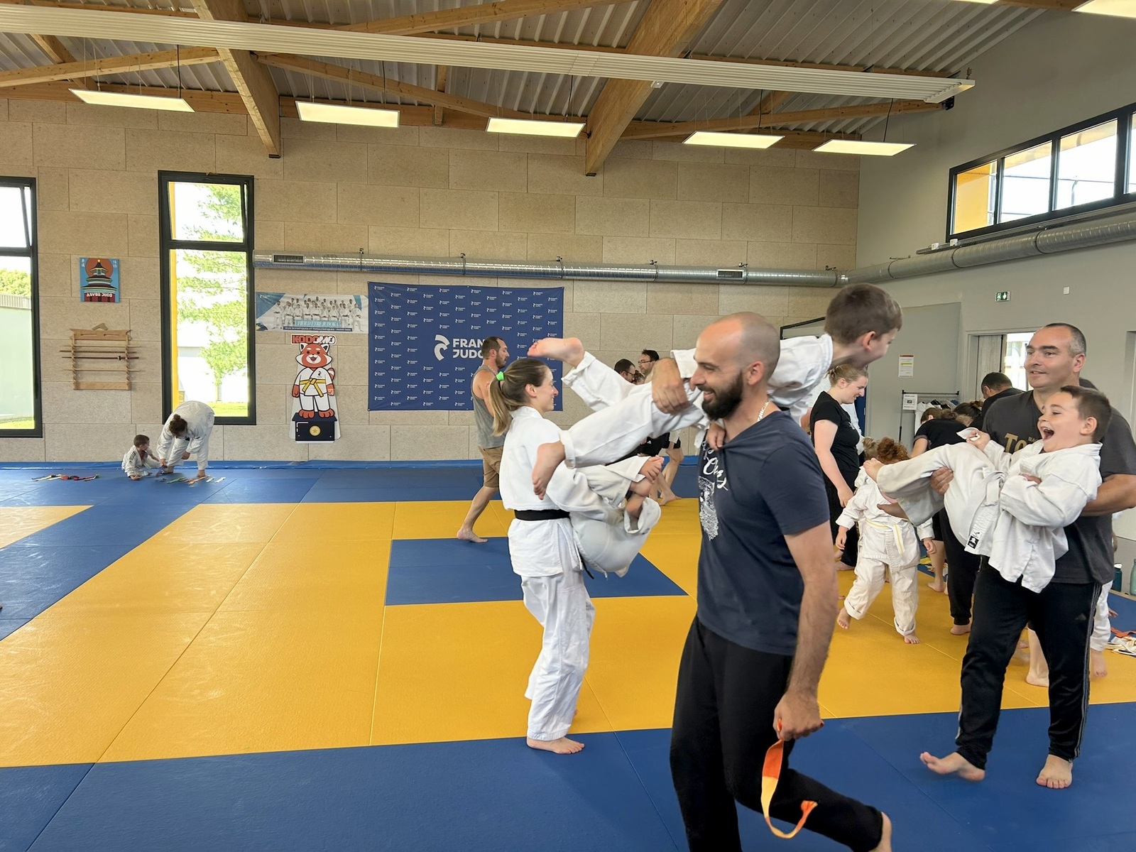 Samedi 14 juin 2025, au dojo d'Echenon, s'est déroulé la traditionnelle animation "Fête des Parents", un mix Fête des mamans et Fête des papas. Un papa ou une maman en accompagnement de son enfant sur le tatami.
