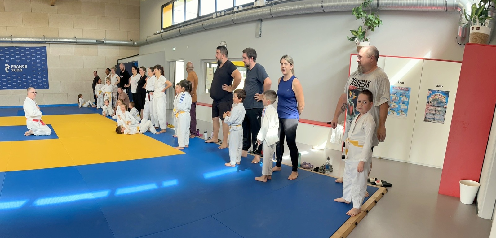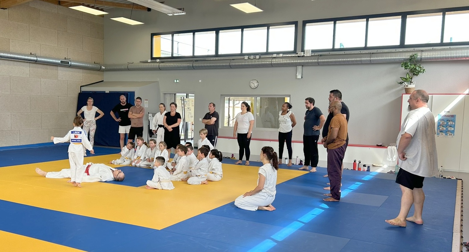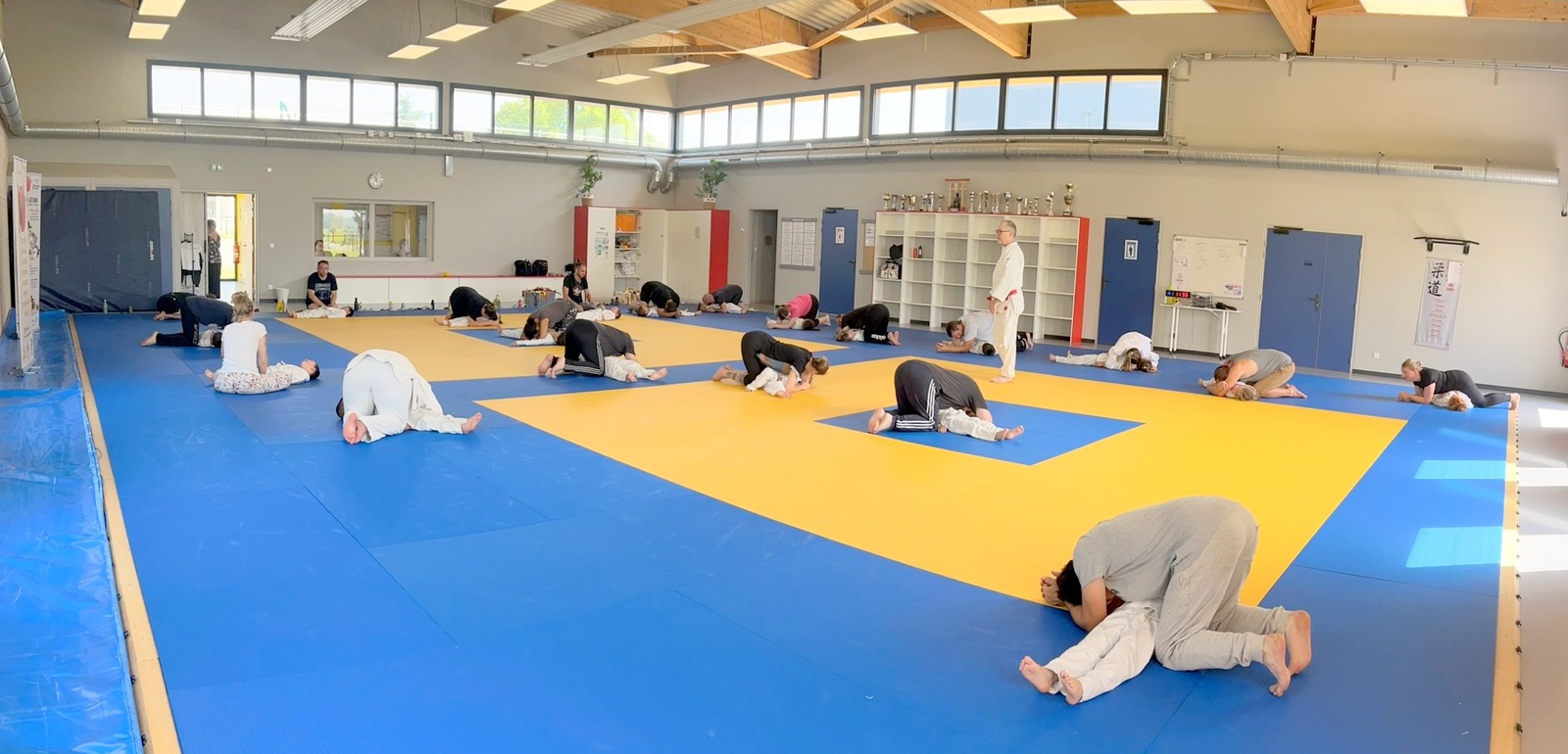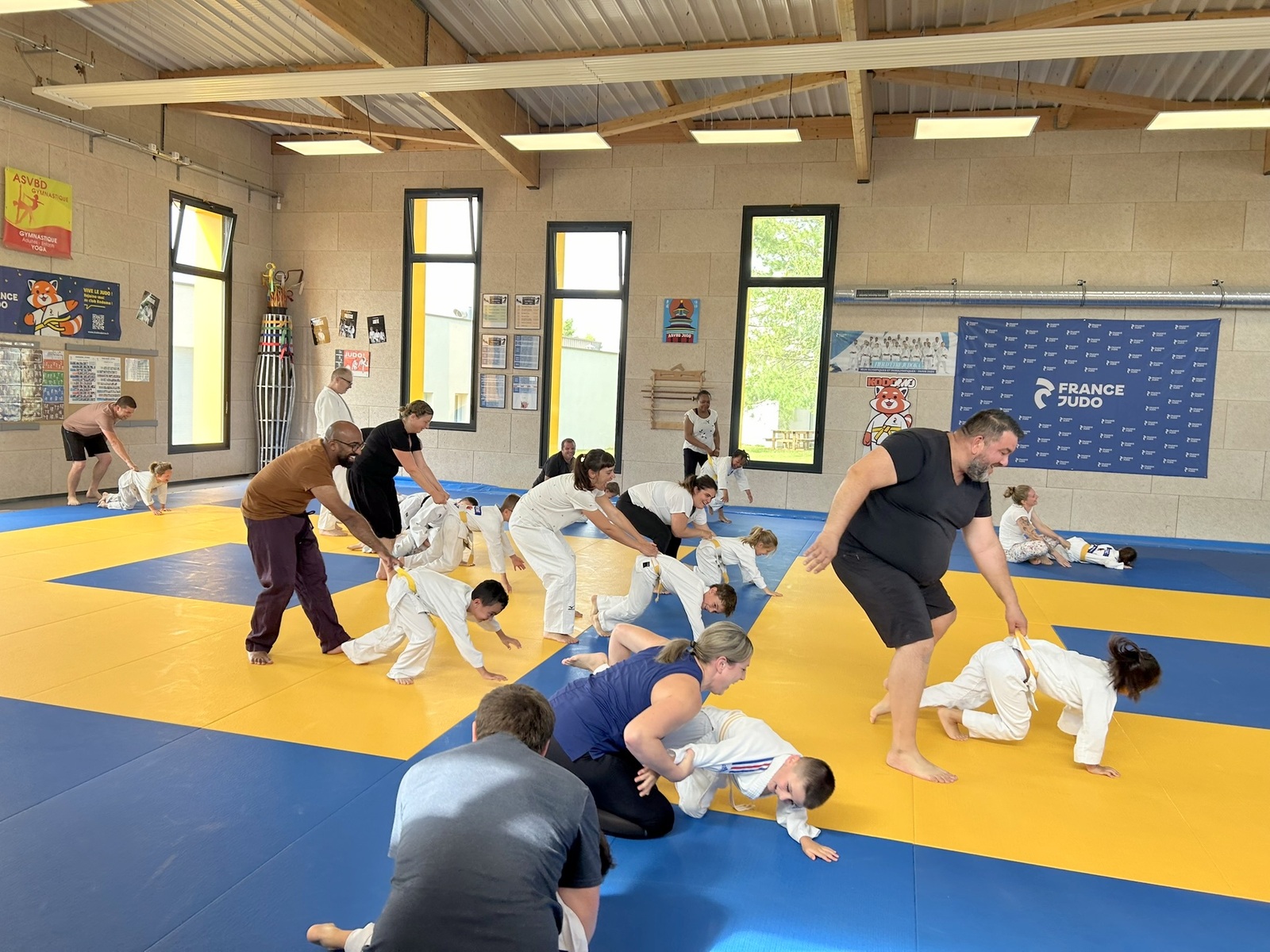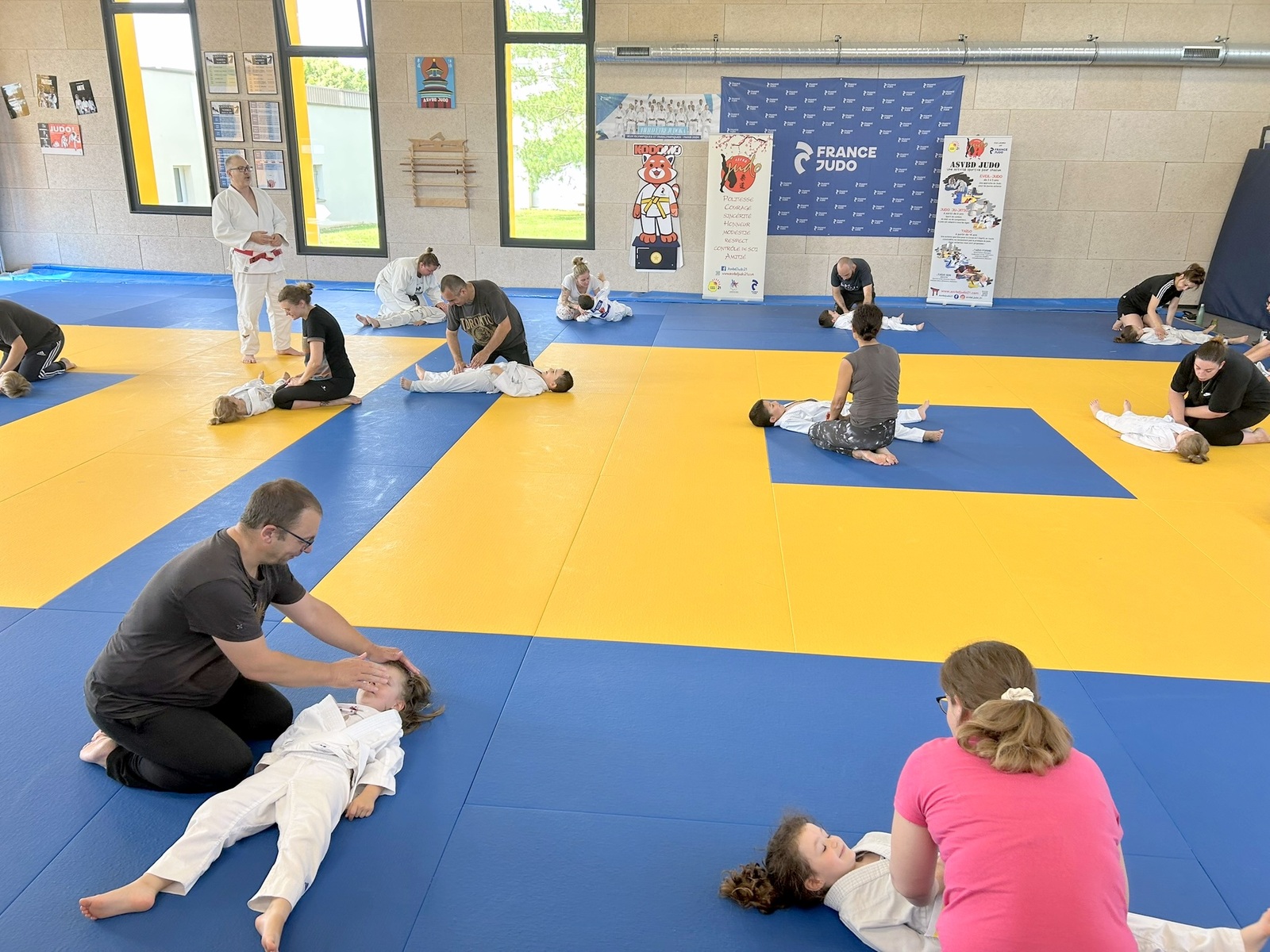 Samedi 14 juin 2025, au dojo d'Echenon, s'est déroulé la traditionnelle animation "Fête des Parents", un mix Fête des mamans et Fête des papas. Un papa ou une maman en accompagnement de son enfant sur le tatami.