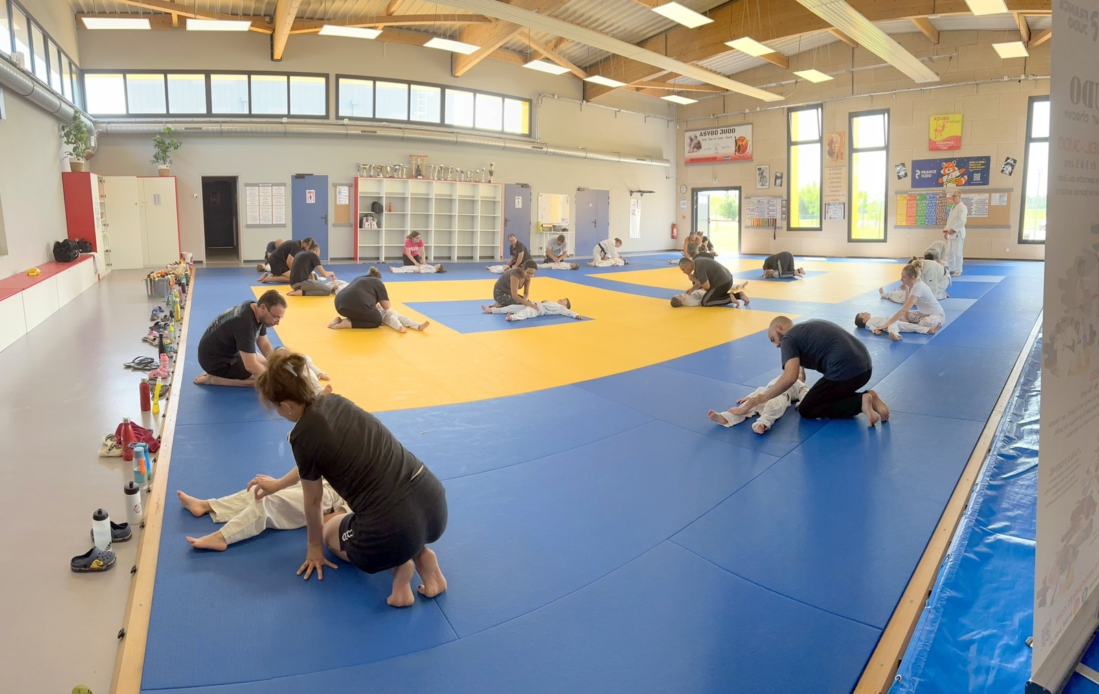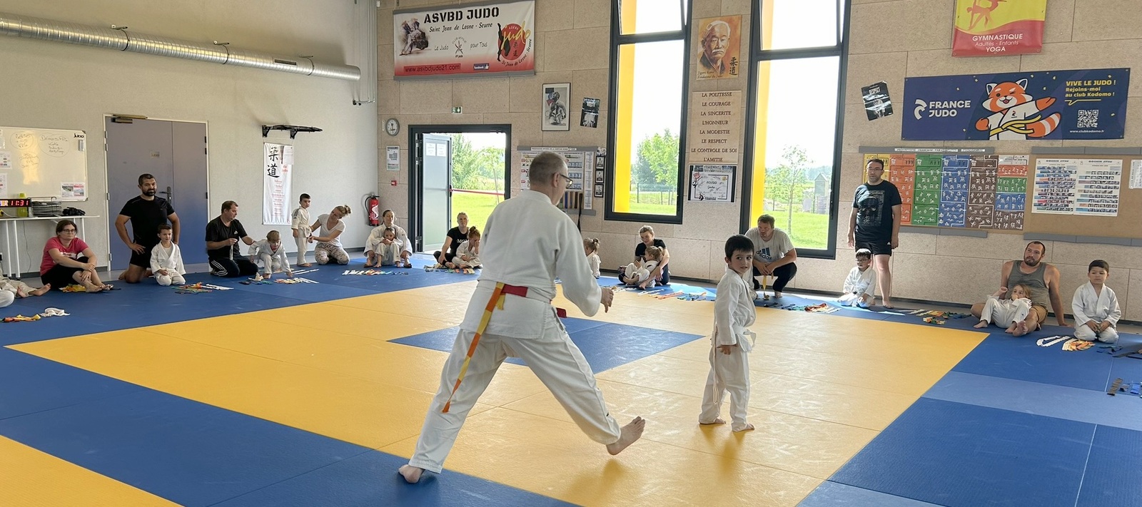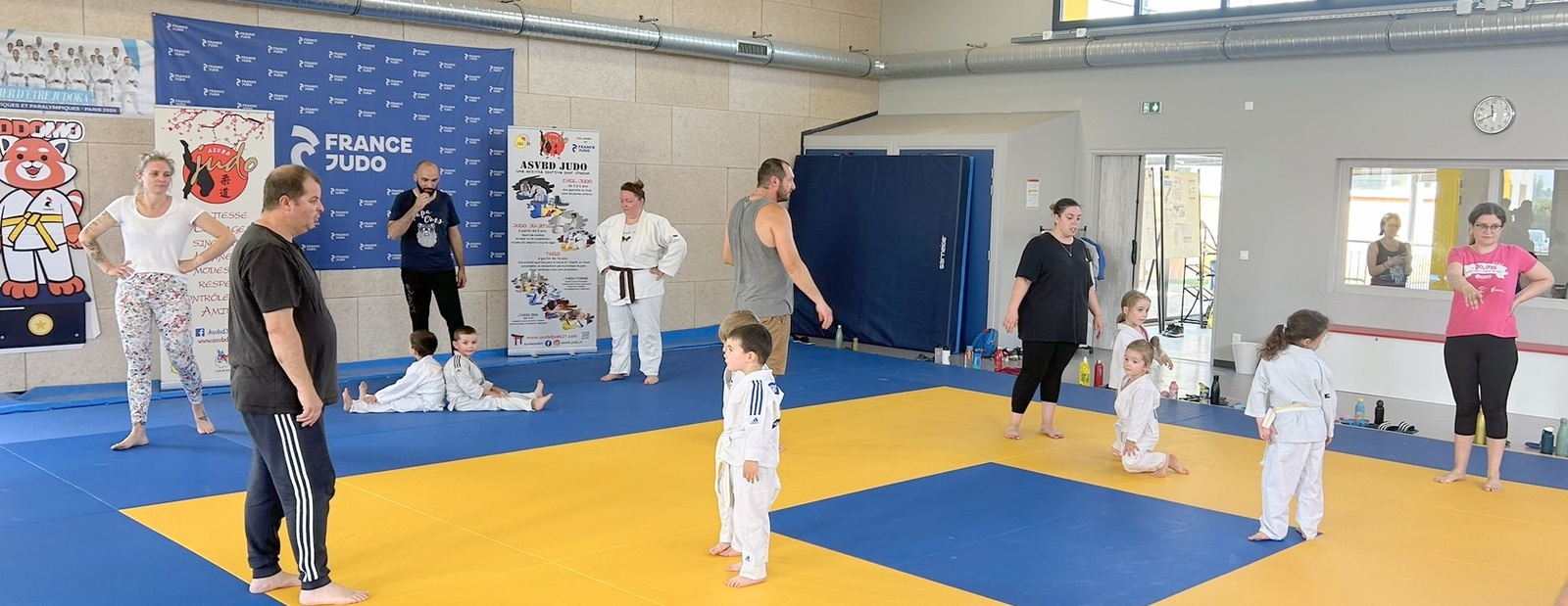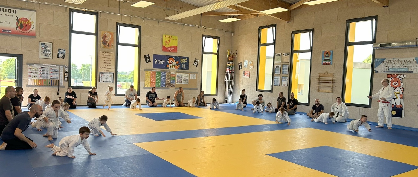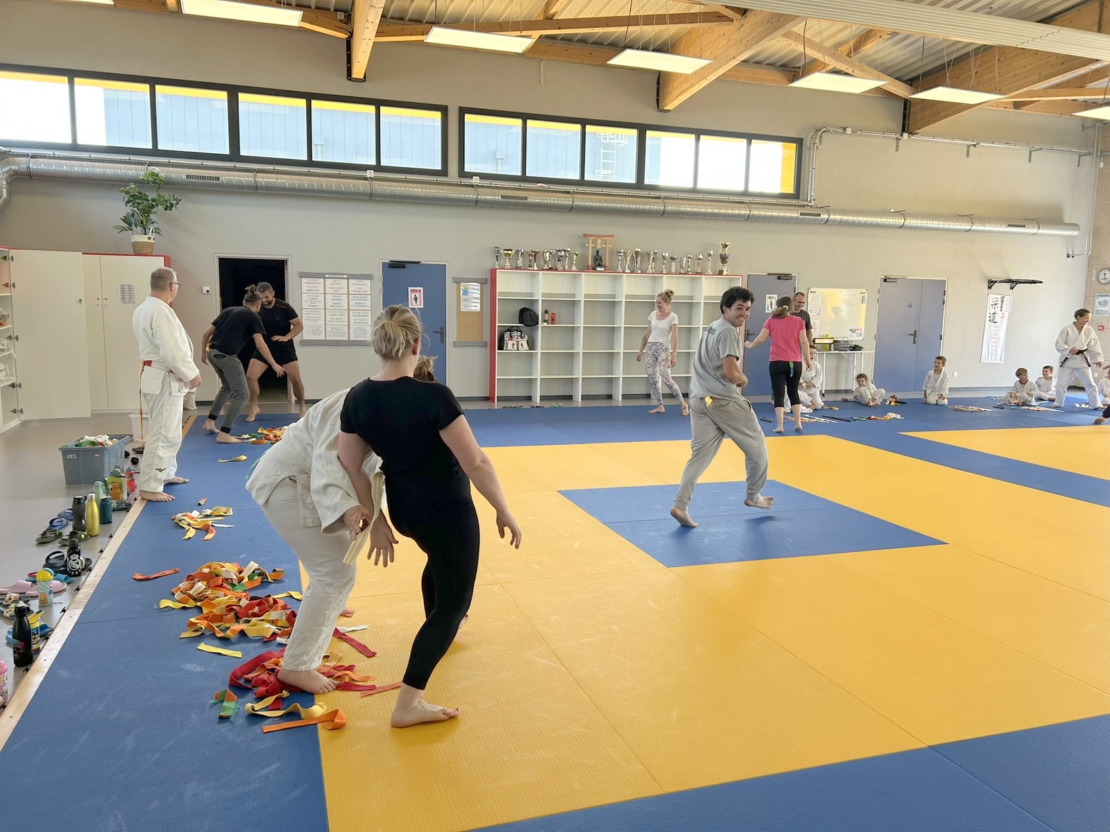 Samedi 14 juin 2025, au dojo d'Echenon, s'est déroulé la traditionnelle animation "Fête des Parents", un mix Fête des mamans et Fête des papas. Un papa ou une maman en accompagnement de son enfant sur le tatami.
