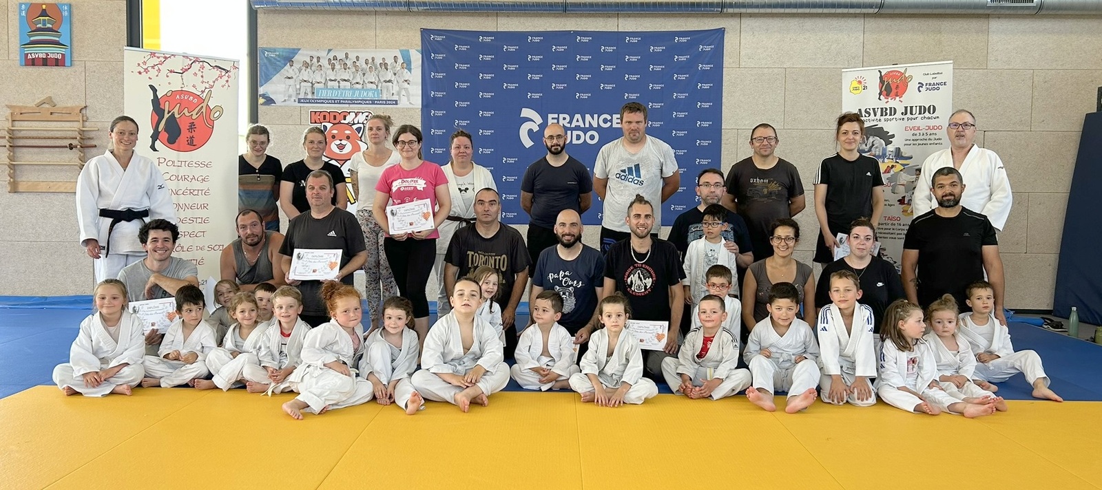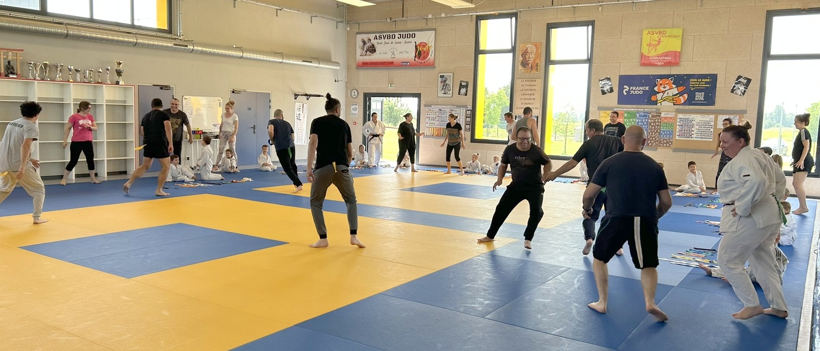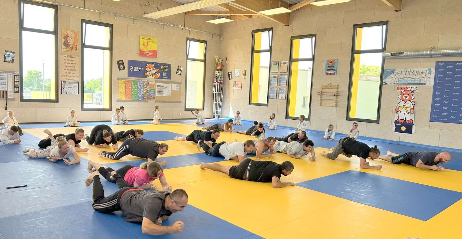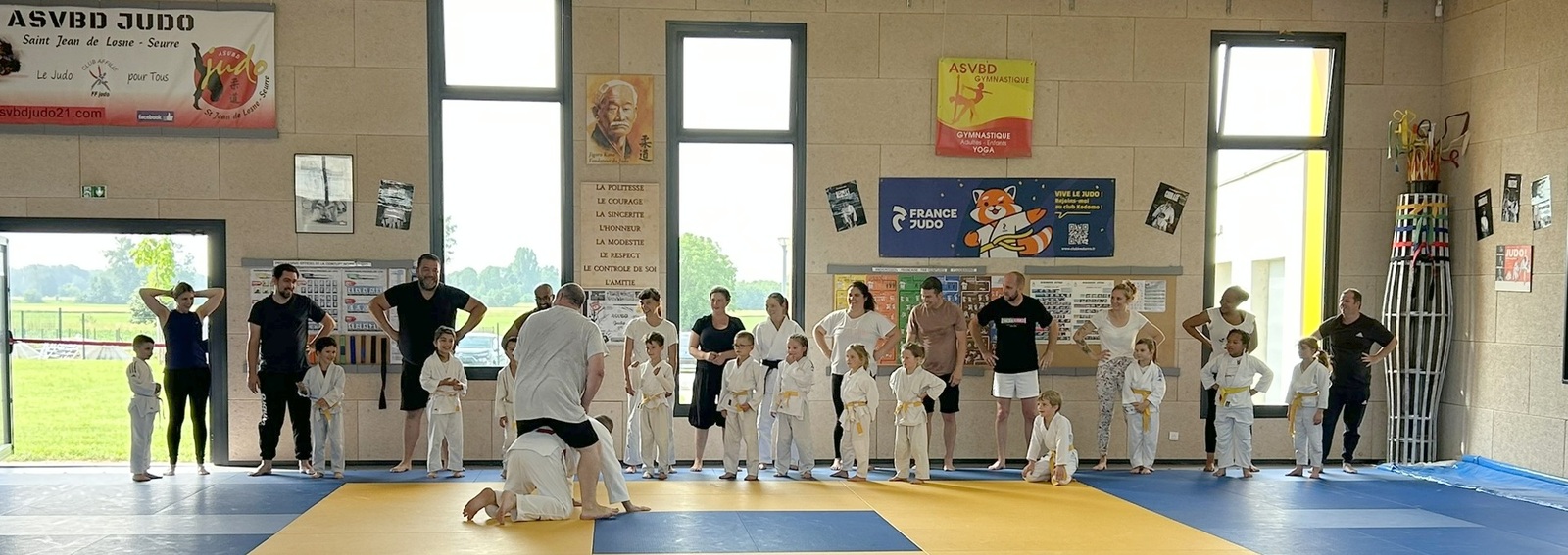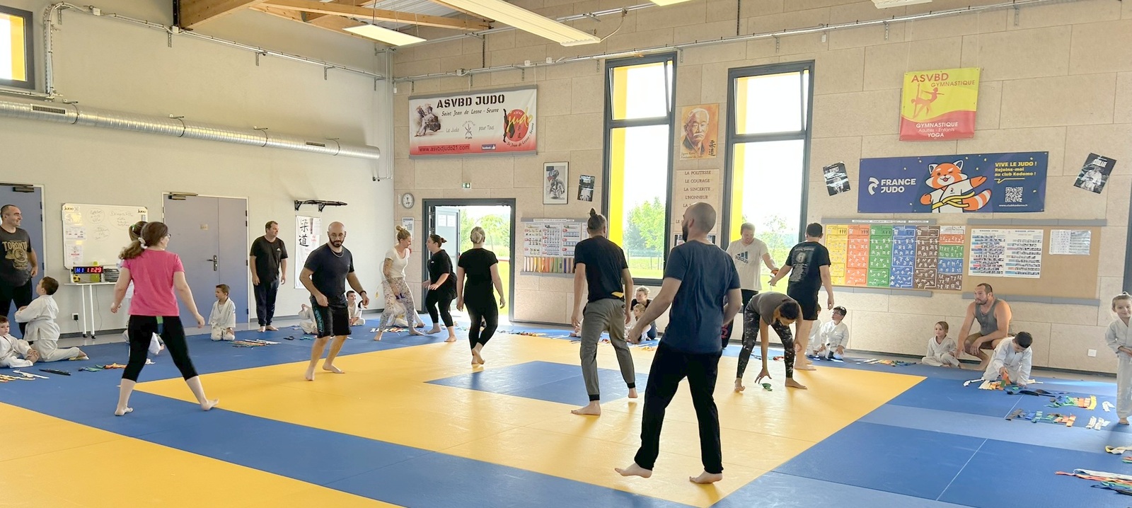 Samedi 14 juin 2025, au dojo d'Echenon, s'est déroulé la traditionnelle animation "Fête des Parents", un mix Fête des mamans et Fête des papas. Un papa ou une maman en accompagnement de son enfant sur le tatami.