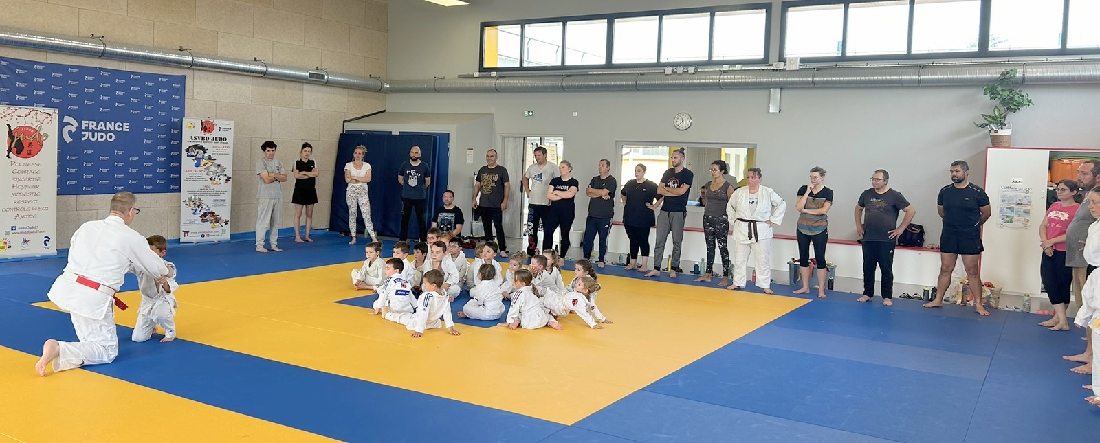 34 enfants, accompagnés de leurs papas ou de leurs mamans, ont foulé le tatami pour ces deux cours particuliers.