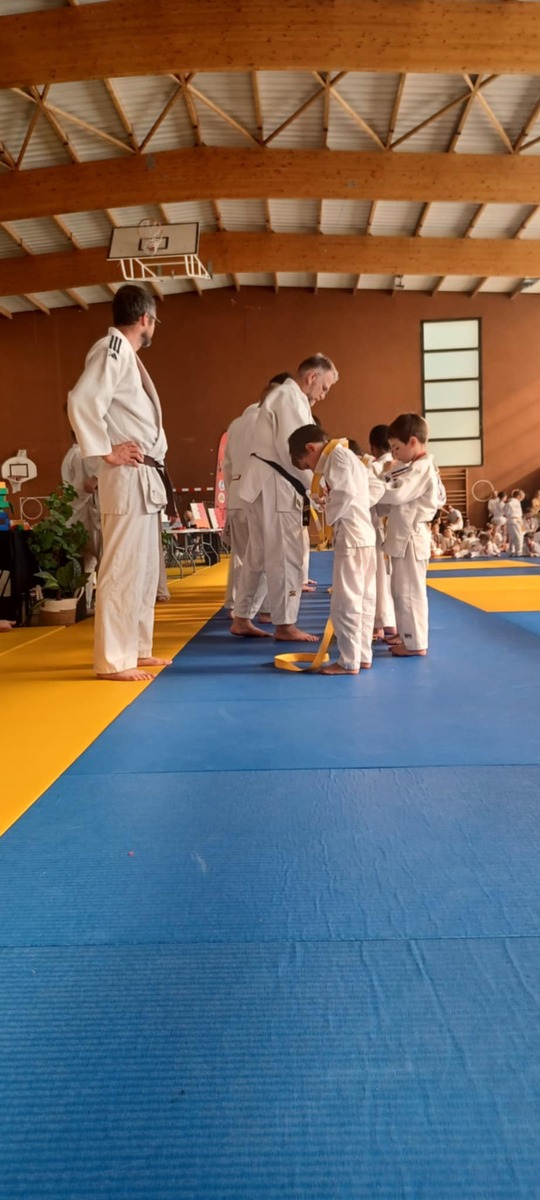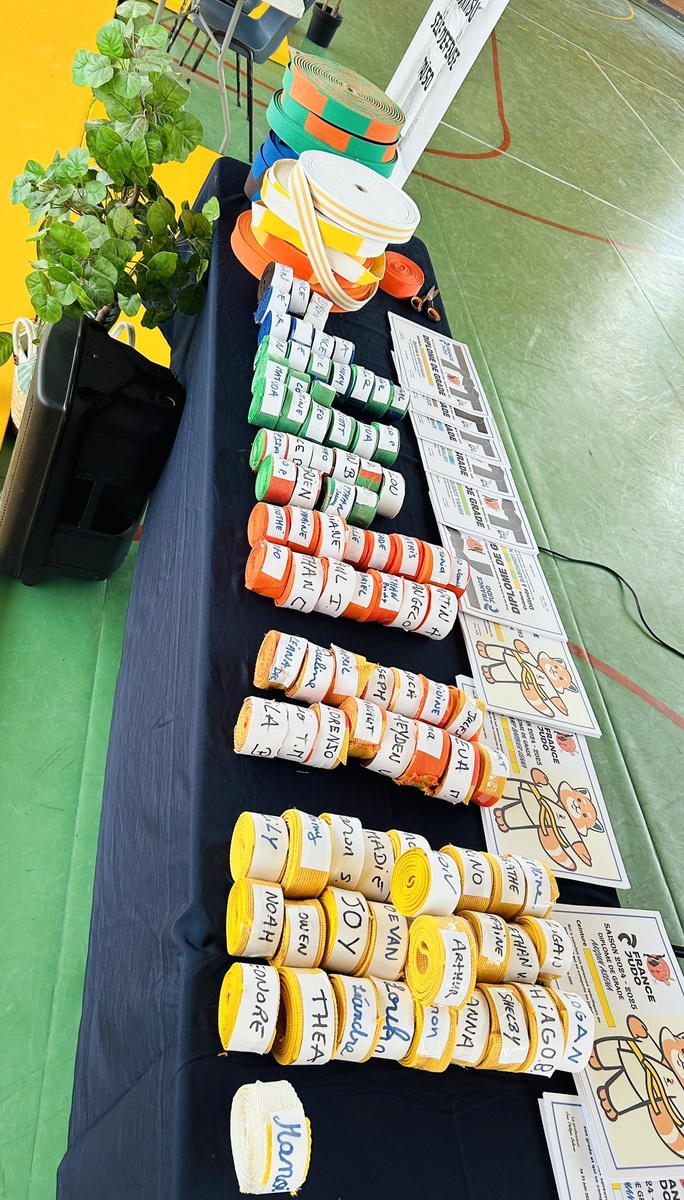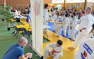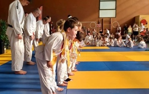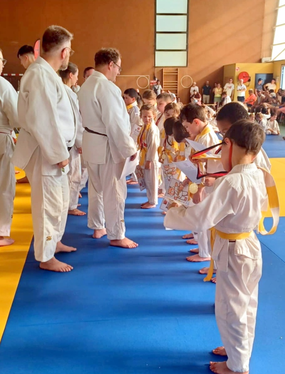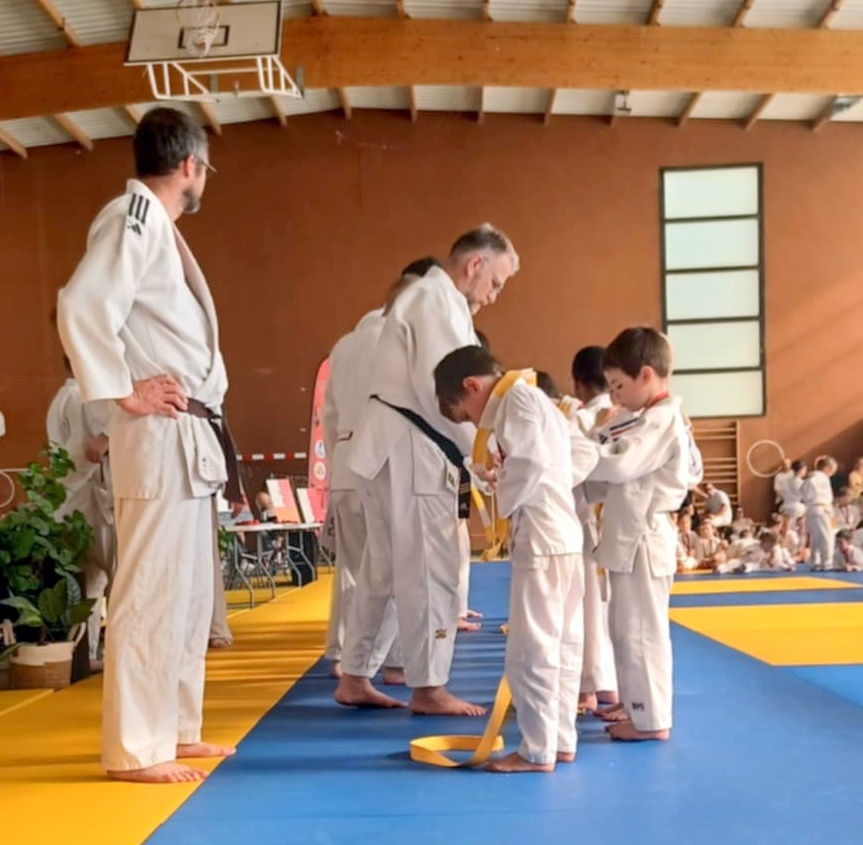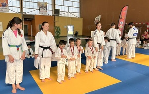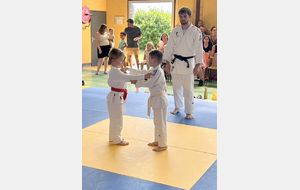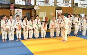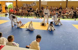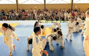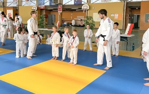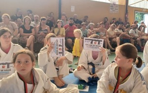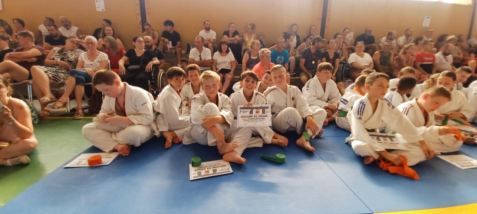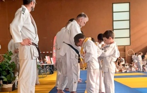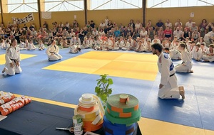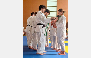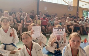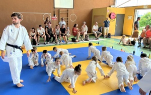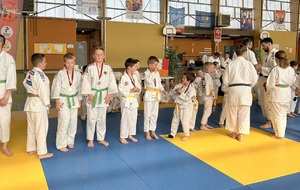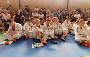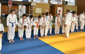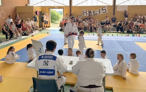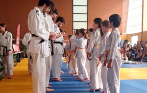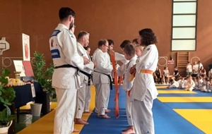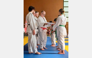 A la suite: Une cérémonie des grades pour les ceintures de couleurs a remplacé l'animation combat. Les judokas petits et grands qui ont progressé et qui ont validé leurs nouveaux grades lors des passages de grade organisés par le professeur début juin, ont reçu des mains des ceintures noires et des ceintures marrons leurs nouvelles ceintures avec un diplôme attestant leur nouveau grade.