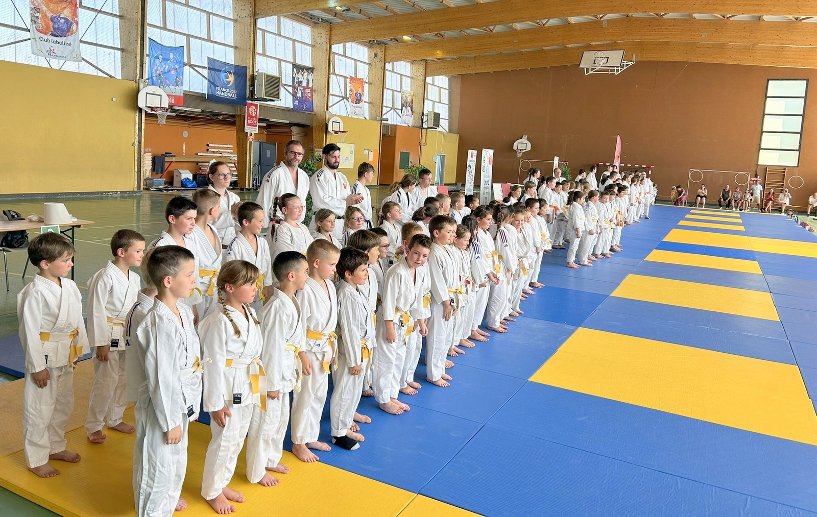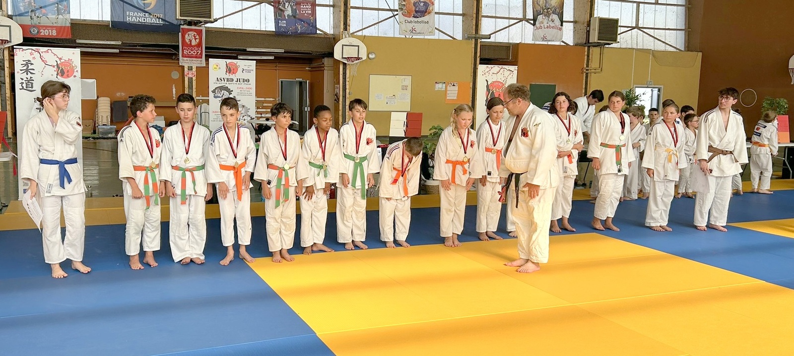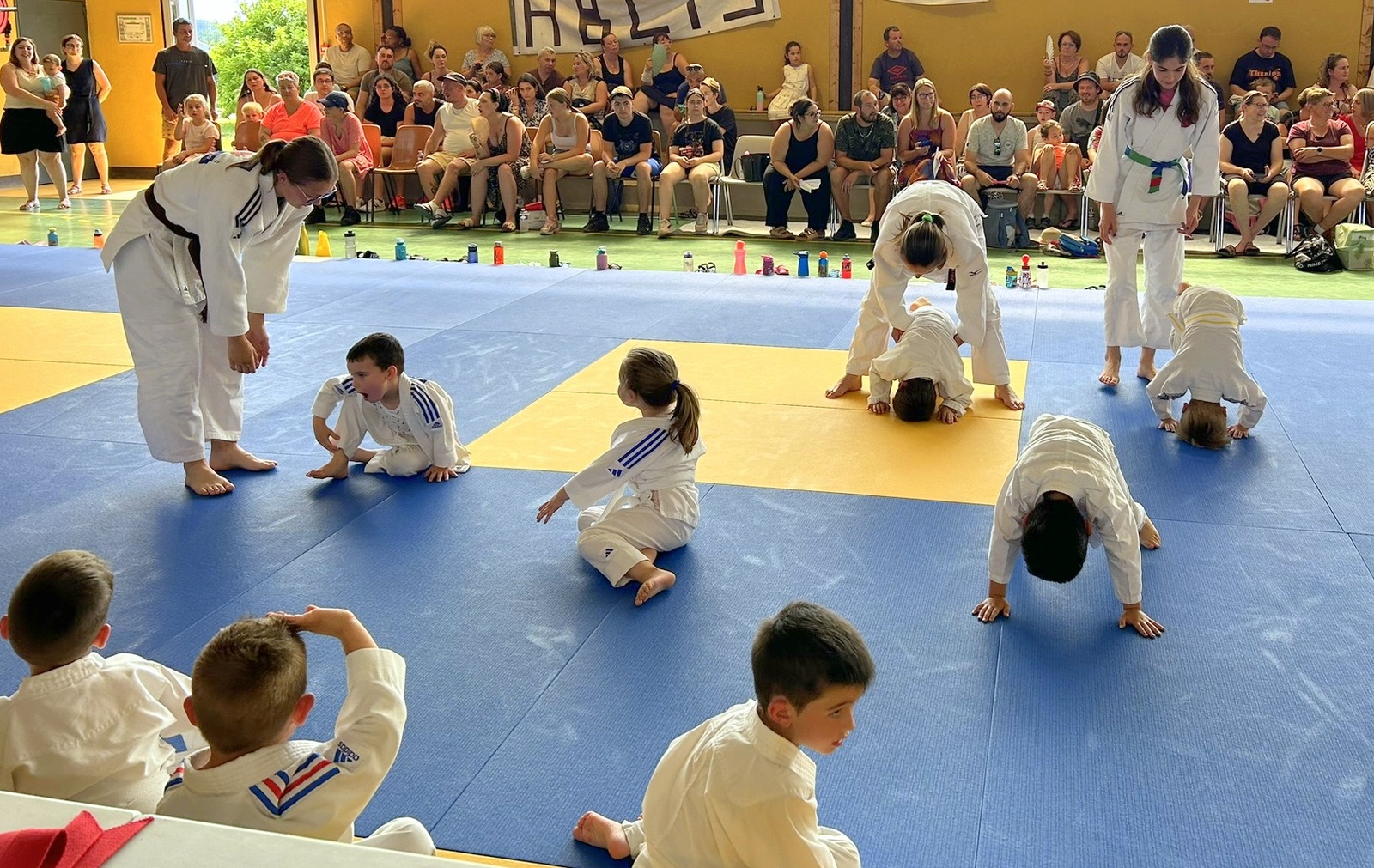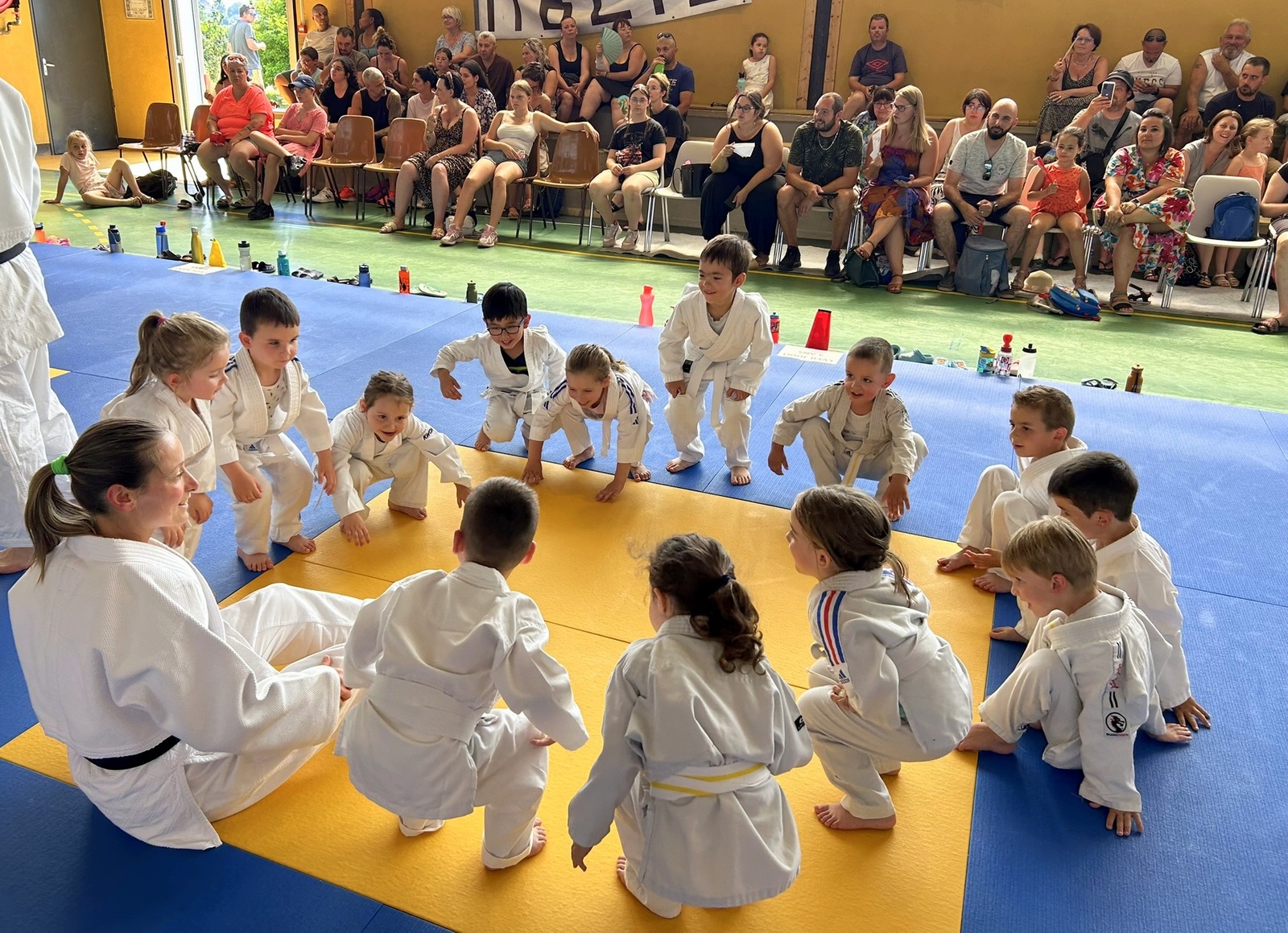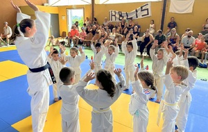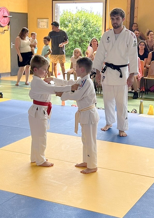 A la suite: Une cérémonie des grades pour les ceintures de couleurs a remplacé l'animation combat. Les judokas petits et grands qui ont progressé et qui ont validé leurs nouveaux grades lors des passages de grade organisés par le professeur début juin, ont reçu des mains des ceintures noires et des ceintures marrons leurs nouvelles ceintures avec un diplôme attestant leur nouveau grade.