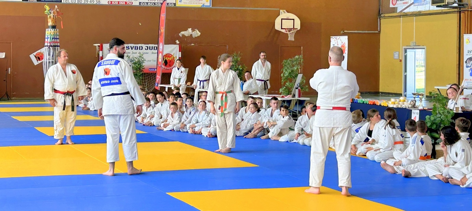 Cette cérémonie a été ponctuée de quelques démonstrations mettant en valeur après le combat, le judo technique et les katas. Le groupe qui pratique le taïso zen le lundi soir à Seurre a également présenté un aperçu de ses connaissances.
