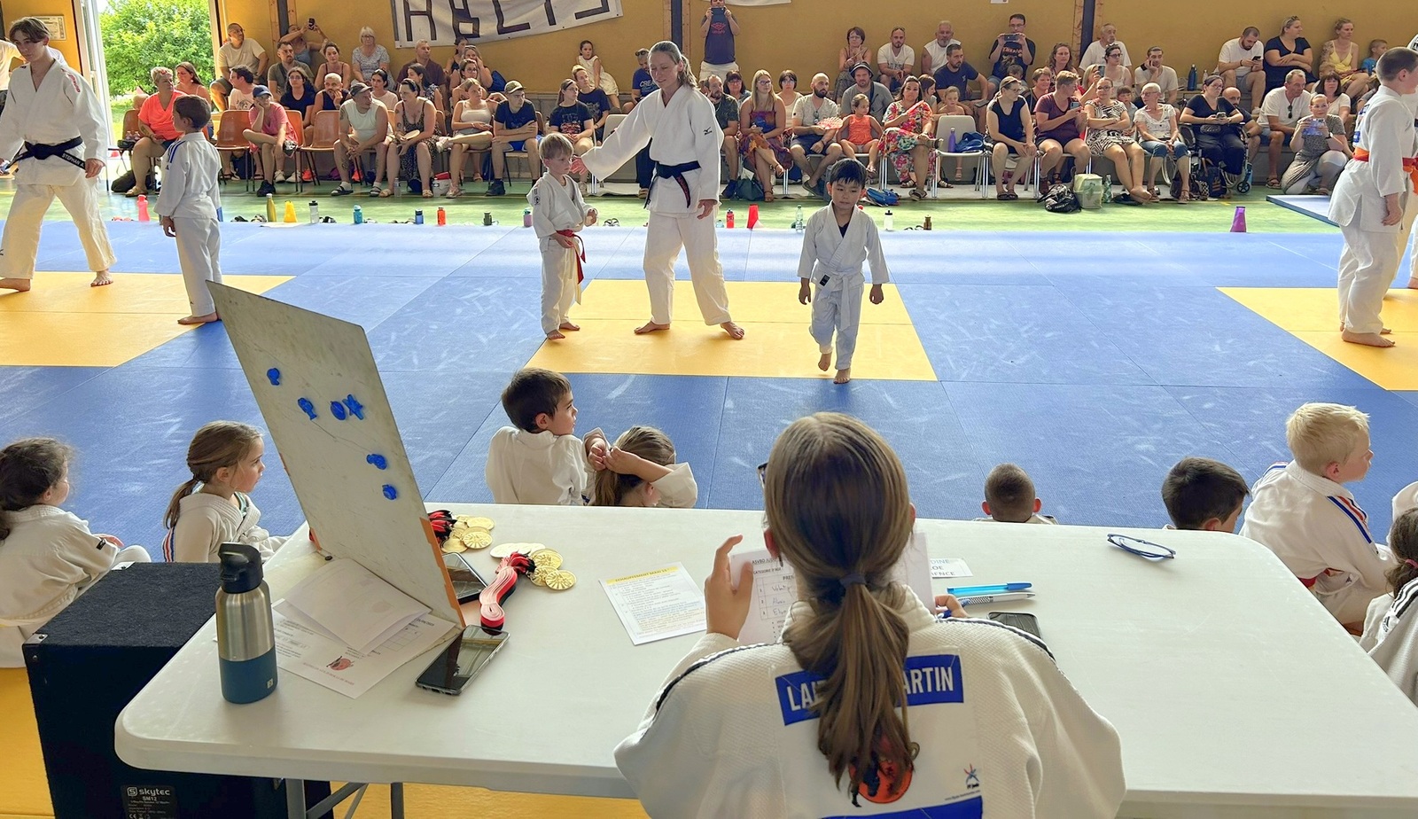 A partir de 16h30: Une animation combat qui a permis aux plus jeunes judokas des éveils judo aux benjamins de s'exprimer à travers le combat sous la forme d'un interclubs. Les plus confirmés de minimes aux adultes ont encadré la plateforme en arbitrant. L'animation a débuté par la mise à l'honneur des officiels du clubs, nos arbitres et commissaires sportifs titrés et en formation; Ils ont ensuite présenté aux publics venus nombreux les règles du combat de judo.