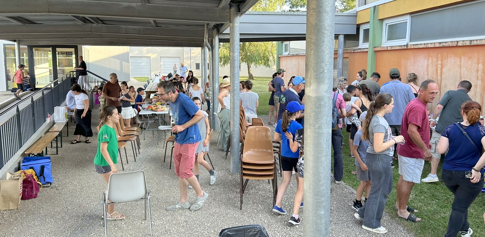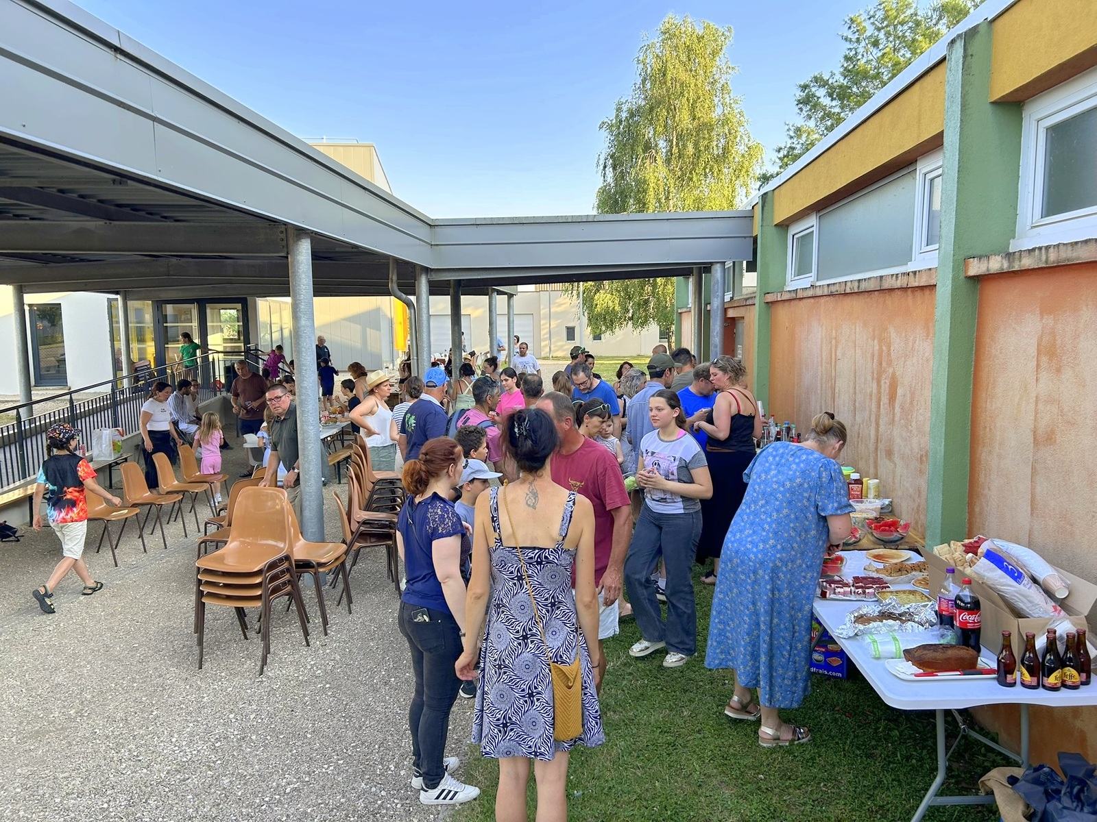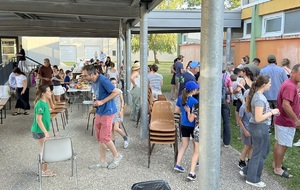Barbecue participatif: Un certain nombre de familles sont restées en soirée pour participer au barbecue participatif Plus de 100 personnes ont ainsi échangées et se sont rencontrées autour du verre de l'amitié et des grillades offertes par le club.