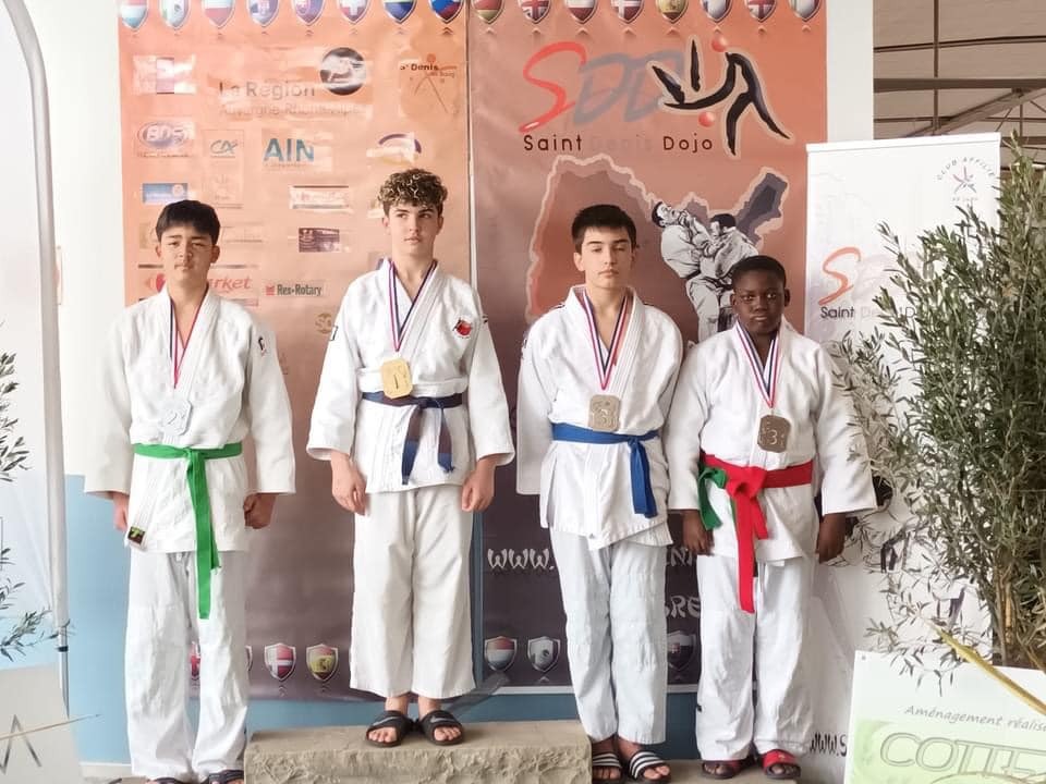 Dimanche 20 février à eu lieu à St Denis les Bourg (01) l'Open de Bresse. 4 minimes du club y ont participé. Voici leurs bons résultats. En photo, le podium d'Arthur qui gagne en - de 66kg.