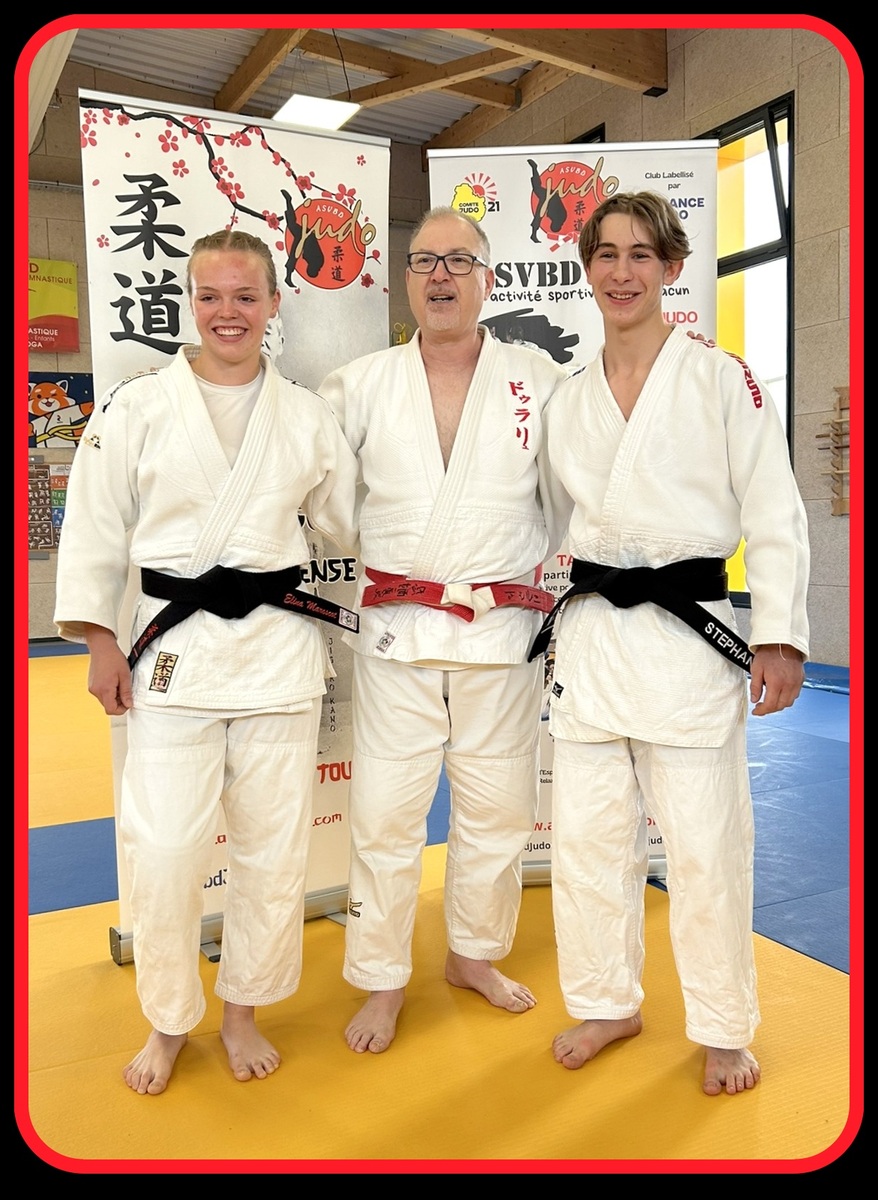 Vendredi 6 juin 2025, à 19h30, au dojo d'Echenon, 2 judokas du club, suite à leur homologation fédérale respective, ont reçu leur ceinture noire 1er Dan. Belle cérémonie, accompagnée de leurs familles, discours, émotions et buffet de l'amitié, offert par les parents.