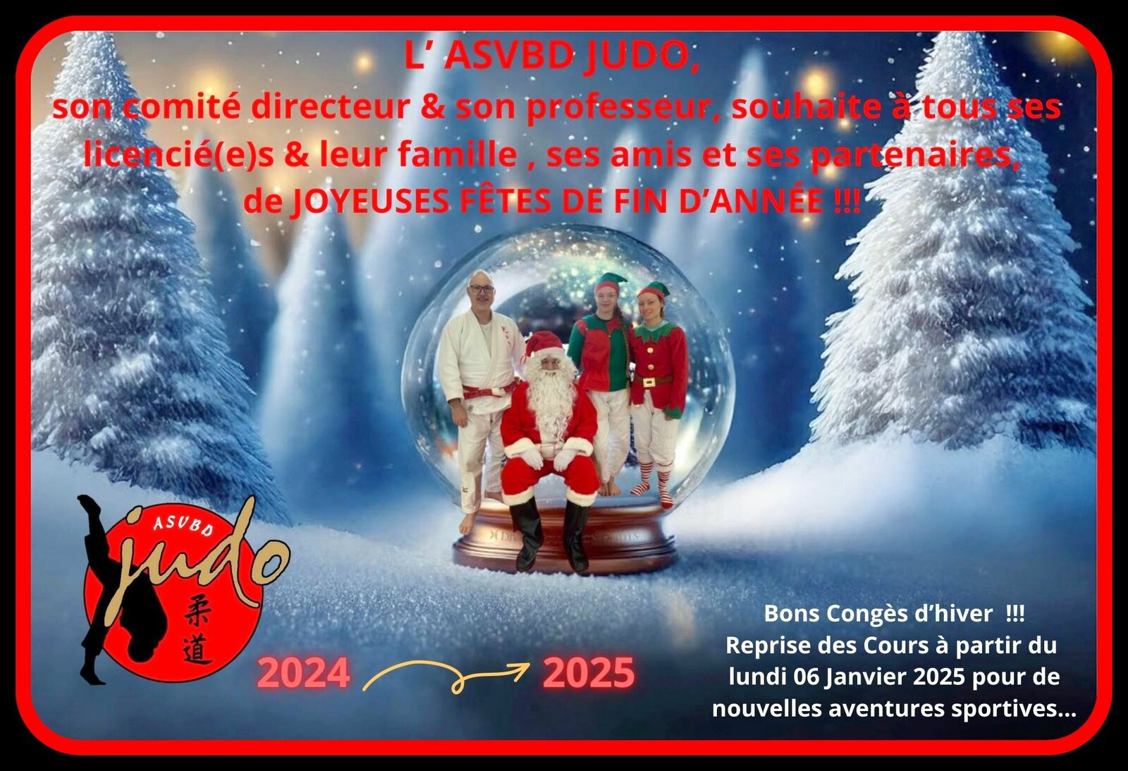 Une partie de la saison 2024-2025 se termine !! Merci pour votre engagement !! Une pause et ensuite repartons pour de nouvelles aventures sportives dès le lundi 6 Janvier 2025 !!