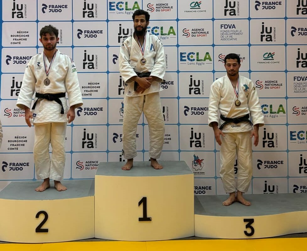 SAMEDI 7 DECEMBRE A LONS LE SAUNIER A EU LIEU LE CHPT GRANDE REGION JU JITSU NE WAZA SENIOR. UN JUDOKA DU CLUB, MARIUS BUORO ETAIT ENGAGE. VOICI SON BON RESULTAT. En photo, le podium de Marius.