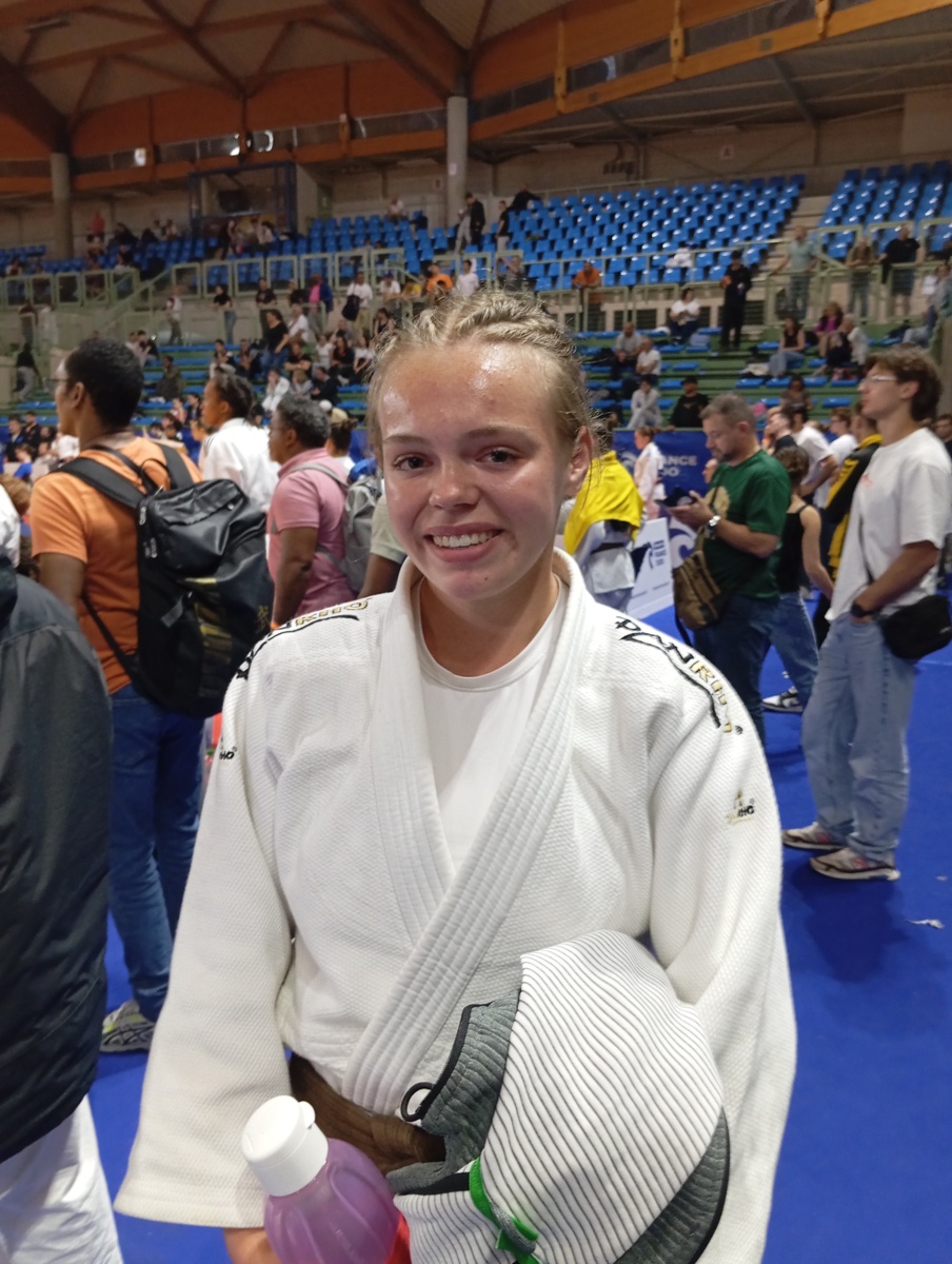 ELINA SE QUALIFIE EN TABLEAU PRINCIPAL APRES AVOIR TERMINE 2EME DE SA POULE DE QUALIFICATION SUR 3. ELLE PERD SON 1ER COMBAT PAR DECISION A LA SUITE D’UNE EGALITE PARFAITE AU SCORE ET GAGNE SON DEUXIEME COMBAT PAT IPPON.