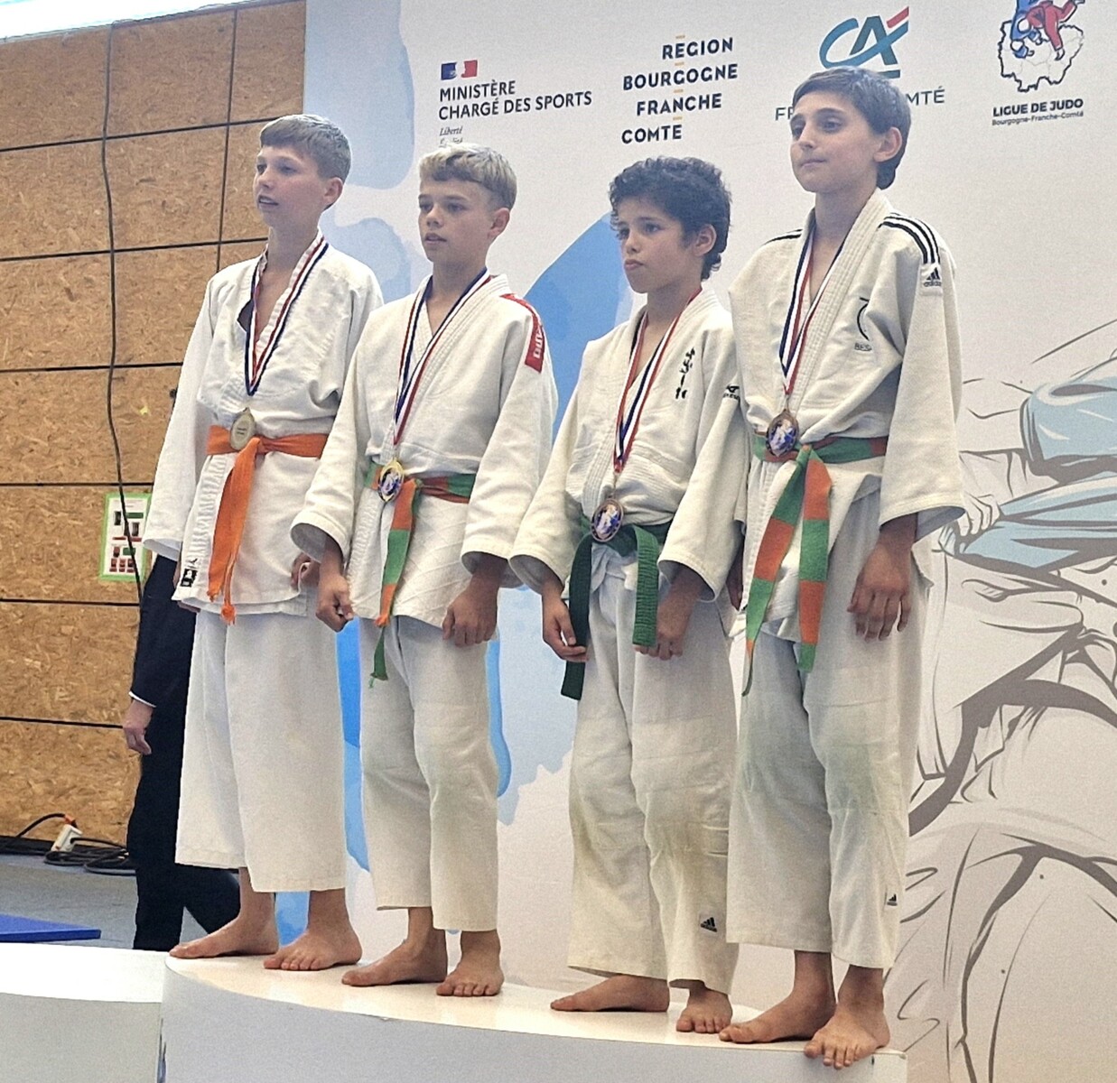 SAMEDI 24 MAI A EU LIEU A BEAUNE LE CRITERIUM GRANDE REGION BOURGOGNE FRANCHE COMTE BENJAMINS. ENZO PICARD ET LOUANA MARESCOT ETAIENT QUALIFIES. VOICI LEURS BONS RESULTATS. En photo, le podium d'Enzo.