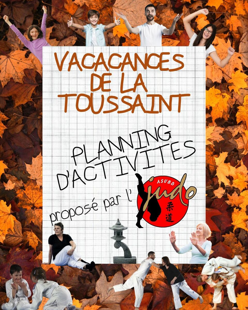 Planning d'activités proposées par l'ASVBD JUDO lors des congés de la Toussaint 2025 du 18 octobre au 2 novembre.
